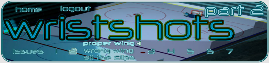 For the rest of this page, I'll be looking at wrist shots taken from the shooter's proper wing, starting with shots taken from the proper foot, then shots taken from the wrong foot, and then from both feet. |