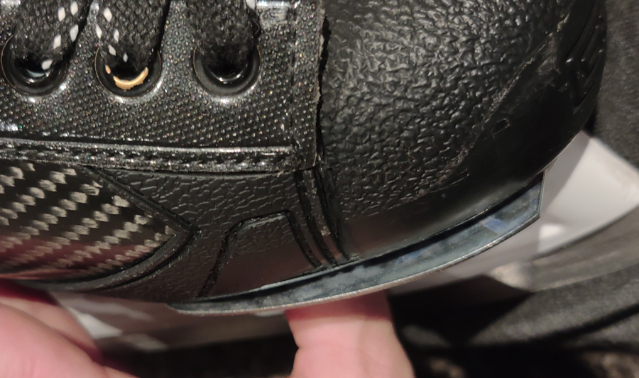 And below is the result on the left skate. I've photographed Overdrive many times, and the slightest shift in the angle or light will make it look as though the blade is in or out more. The blades sit the same here.